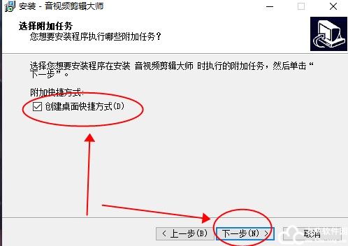 6、对于软件的附加任务进行选择,是否创建快捷方式。