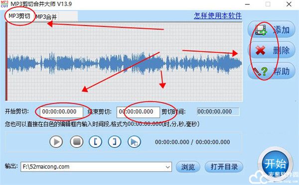 2、首先需要添加音频文件,在设置剪辑的时间和位置,设置输出的目录,最后点击开始即可。