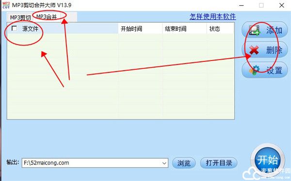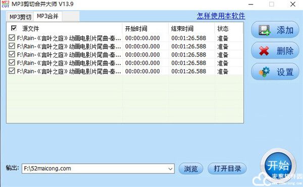 3、如果需要把两个甚至多个音频文件进行合并,只需要把音频文件添加进来后,再点击开始即可。