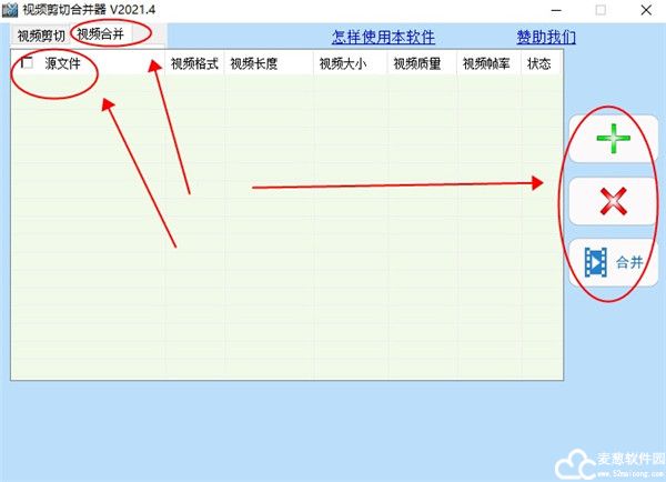7、对于视频合并而言,操作也是非常简单的,只要把多个视频文件添加进入即可实现合并。