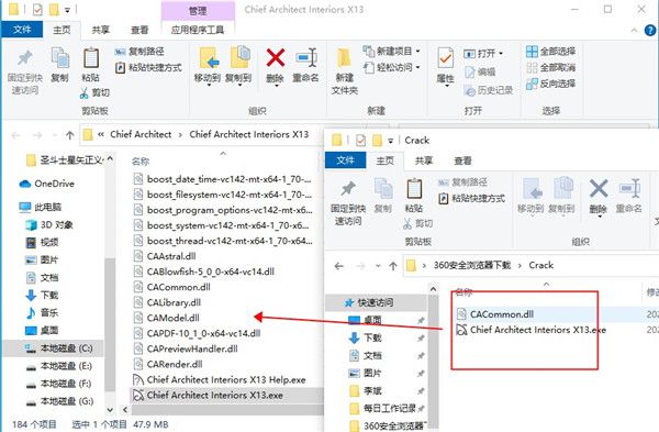 9、将破解文件中红色方框内的文件复制,并替换到软件的安装路径中;