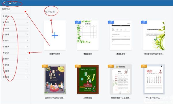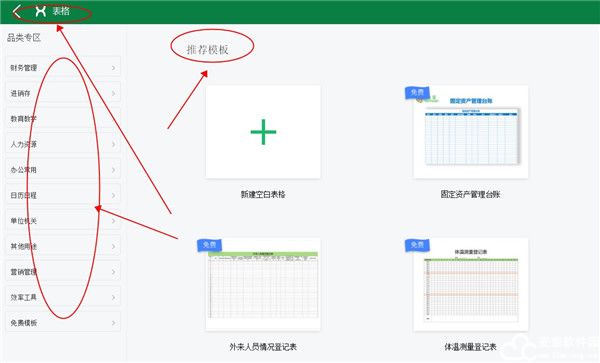 2、表格中,一样有着很多的模板可以使用,并且在左边有着专题,用户可以选择。