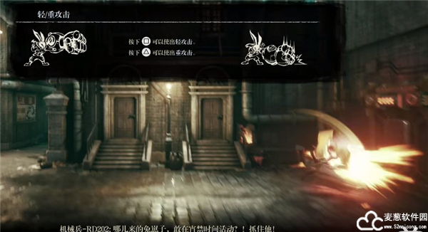 7、一段开场动画中为我们讲述了这个故事的起源,作为主角的你被机器人所追杀。