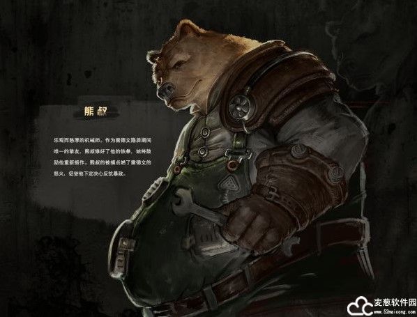 乐观而憨厚的机械师。作为雷德文隐居期间唯一的挚友,熊叔修好了他的铁拳,始终鼓励他重新振作。熊叔的被捕点燃了雷德文的怒火,促使他下定决心反抗暴政。