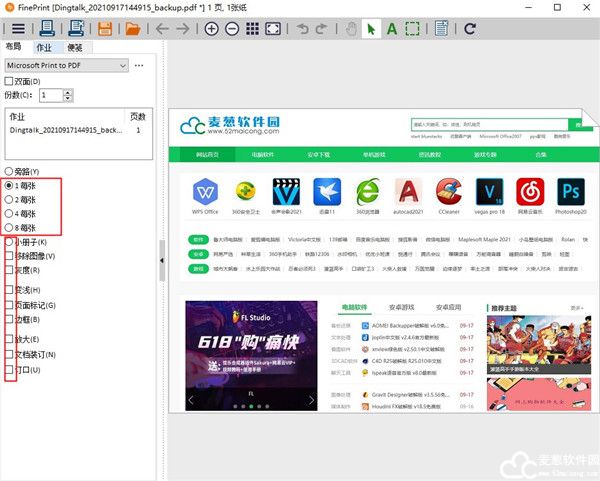 4、FinePrint 11破解版还可以在打印的主界面设置打印的张数和样式,根据需求进行选择即可;