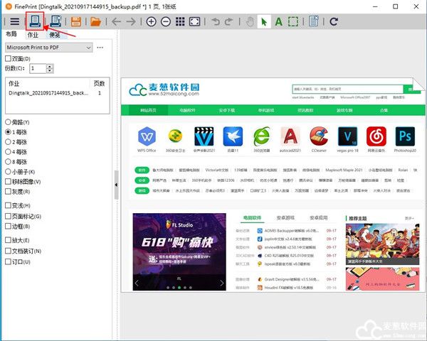 第2步:在预览窗口中设置布局选项,然后单击工具栏左侧的“打印”按钮。