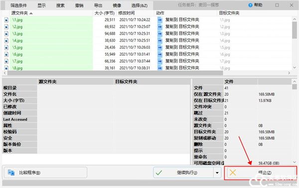8、如图就是SyncBackPro 10完美破解版任务执行的全部细节了,想要终止任务可以点击终止。