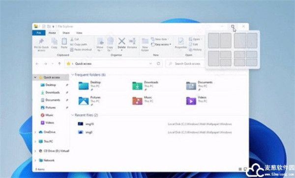 新系统还包括新的快速布局应用窗口功能,可以使用所有应用程序都有的最大化按钮来实现(如下方的动图),用户可以快速地将窗口放在左侧、右侧,或者四个角落,或在桌面上将它们排列成若干部分。