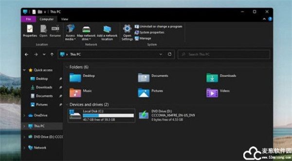win11安装助手官方版中的新系统内置的文件管理器改动幅度并不大,改善了对触控的支持,升级了默认的文件类型图标,窗口和导航按钮也有圆角。不过,文件资源管理器的属性标签不支持深色模式。