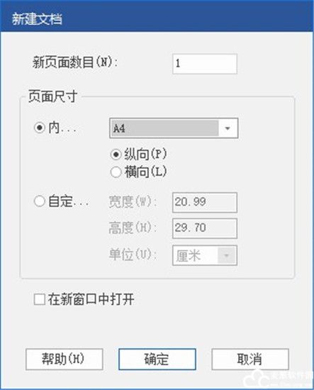 3、对新建的文档进行一些简单的设置,比如文档的页面数量以及页面的尺寸等等,设置好了之后点击确定;