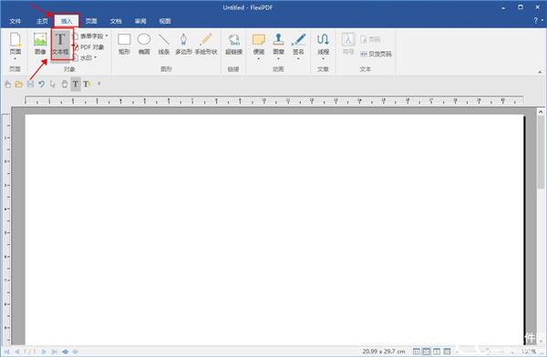 4、之后就可以看见我们创建的空白文档了,此时可以对文档添加你想要的内容了,点击插入-文本框添加文本内容;