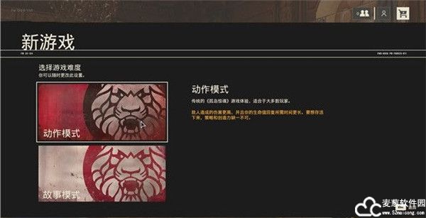 1、首先进入孤岛惊魂6终极版之后,点击新游戏选择游戏的难度以及模式,进入第一主线;