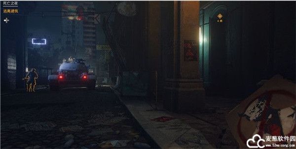 5、你逃离庄园之后来到城市的公路上,这是迎面有一辆装甲车和一个士兵朝你走了过来,你感觉在旁边的阴暗处躲了起来;