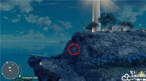 第一个密码表在海面的礁石上,就位于密码箱所在码头的正前方。然后沿着海岸线的蓝色标记一直到一处小悬崖(用钩索可以爬上去),穿过灯塔可以找到第二张密码表。