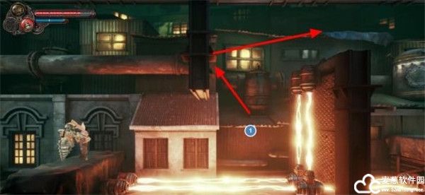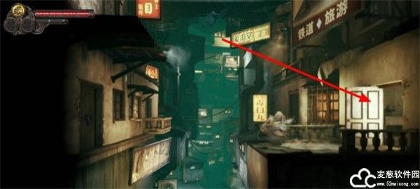 3、之后再使用两段跳技巧并且再加上一个冲刺就可以跳过这堵围墙。