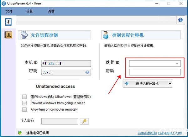 3、之后在远程控制计算机栏中,输入你需要控制的电脑ID和密码,并点击远程连接计算机;