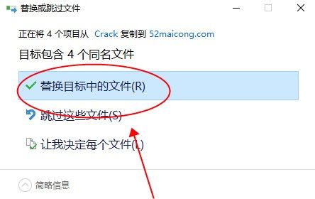 3、选择替换目标中的文件即可破解软件。