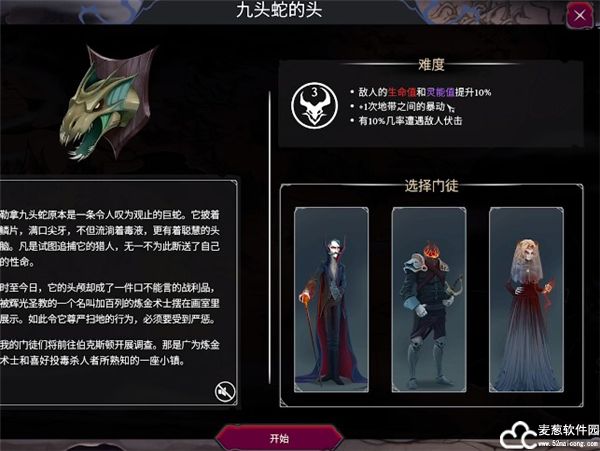 3、我们可以看到每个关卡的难度,以及敌人的增幅,你可以选择合适的门徒开始对战。