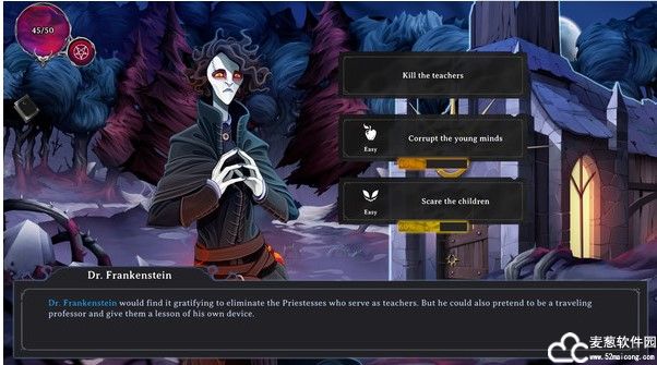 从德古拉、无头骑士、血腥玛丽、白女妖、莉莉丝、赫卡忒、安息日男爵和弗兰肯斯坦及其人造怪物中选择3个门徒组成团队。每个门徒都有自己独特的故事、能力和玩法:结合他们的技能,创造毁灭性的协作,并对付敢于阻挡你的凡人。收集灵魂,用它们换取新的技能、升级和可以强化你门徒的强大遗髑。