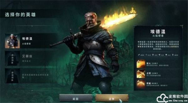 1、在麦葱站下载游戏并打开,首先是选择一位英雄,在右边有关于他的详细介绍。