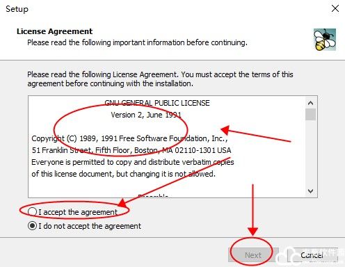 4、阅读许可协议后,勾选我接受,在点击下一步。