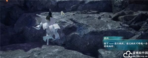 6、按下空格进行跳跃,向前方层次不齐的石头我们就可以跨过。