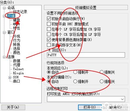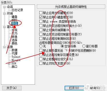 2、如果用户想要初始开启自动换行,或者是初始开启DEC原始模式都可以在终端中勾选。