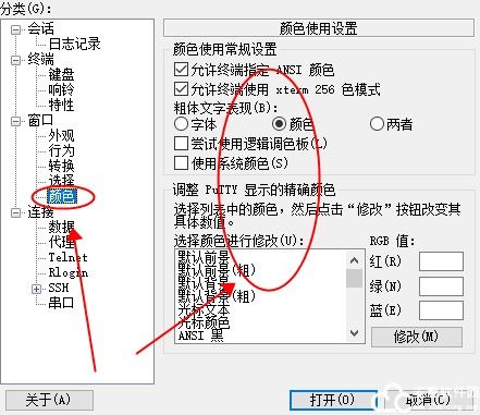 11、颜色的使用设置可以改变终端是否使用指定的ANSI颜色,以及粗体文字的表现。