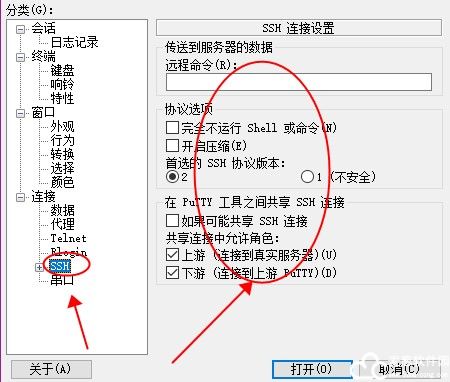 17、SSH的连接设置中,可以对协议的选项进行修改,以及在软件工具间共享SSH连接。