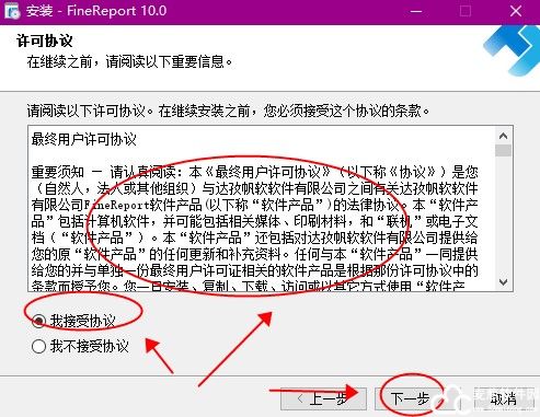 5、阅读许可协议后,勾选我接受,再点击下一步。