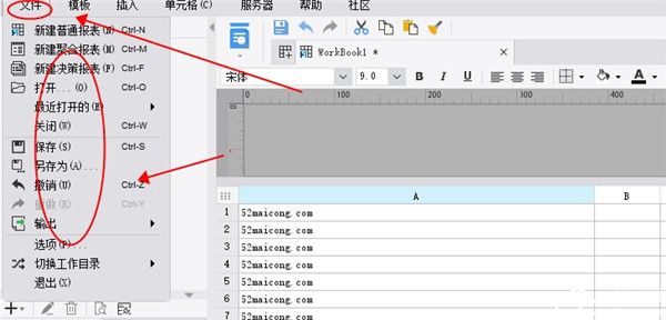 1、在文件中,可以新建一个普通的报表或者是切换工作目录以及另存为其他位置。