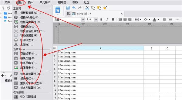2、模板中的工作簿,有着模板的数据集以及Wob属性和导出属性设置。