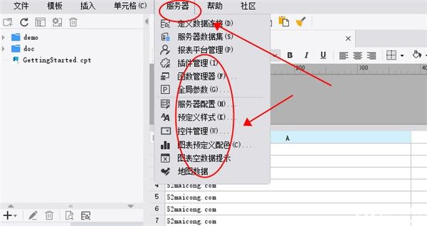 5、服务器中可以定义数据连接以及服务器数据集,并且还能够设置全局参数。