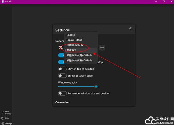Anlink汉化版,能够把手机投屏在电脑上,并且能够在电脑上操控手机,可谓是非常的方便。为什么要好端端放着手机不用,非要投屏到电脑上呢?要知道,电脑的屏幕都要比手机屏幕大个几倍不止,把手机上播放的电影或者是小视频投放到电脑上,岂不是有利于增加观看体验,如果有条件的话,有三十二寸的显示器,那就更不得了,非常的刺激带感。目前网络上流传的投屏软件只能在手机上操作,很难在电脑上实现控制,因此给用户带来了非常大的难题,而现在就不用担心了,在电脑上也照样可以操作手机,所以解决了非常多的棘手问题。要知道,我们这款软件可是最新版本,不仅仅是继承了之前老版本的优势,还在不断的升级和优化之中,以致于把最好的一面展示给广大用户群体,再加上主界面是非常的简洁整齐,所有的功能都一目了然,在使用的过程中能够快速的找到用户所需要的功能,非常的人性化。我们这款Anlink汉化版,在下载安装的时候是英文,安装完成后可以在设置中修改语言,如果不会的话,可以参考下面小编的操作步骤。有需要的小伙伴们,快来本站下载吧!!!