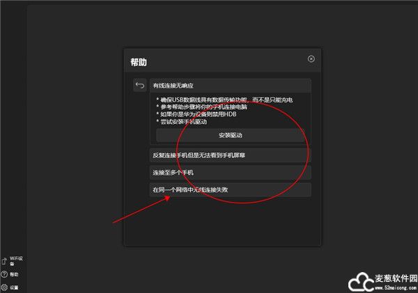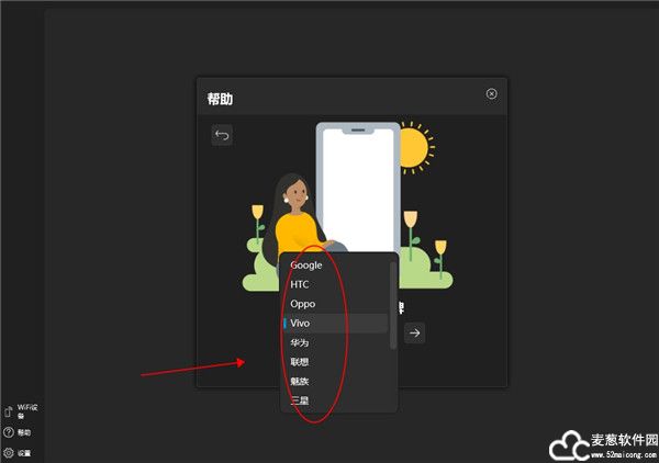 1、在有线连接中,用户可以选择自己的手机的品牌,可以更加准确的创建连接。