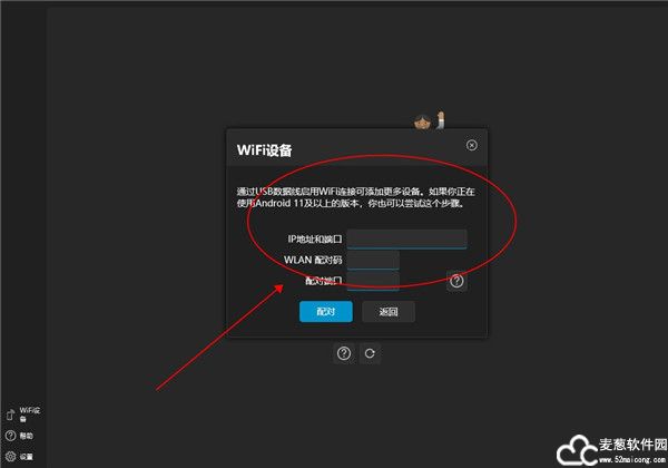 7、对于wifi设备的连接,可以直接输入IP地址或者是端口,以及配对码来实现配对。