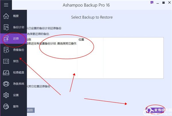 2、如果用户需要还原之前删掉或者是备份的文件,是可以确定文件的位置再点击还原即可。
