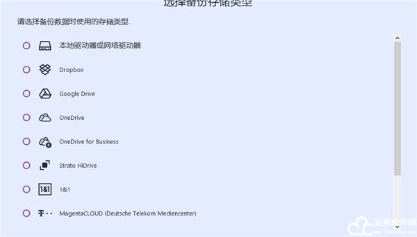 备份文件除支持本地存储外,还支持 OneDrive,Google Drive 等多种云端存储。