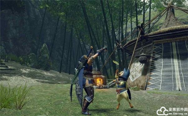 7、猎人据点“炎火村”。吹踏鞴盛行的山明水秀之乡。 齐备了武器和防具加工店等对猎人而言不可或缺的设施,而个性丰富的居民也会为猎人提供帮助。