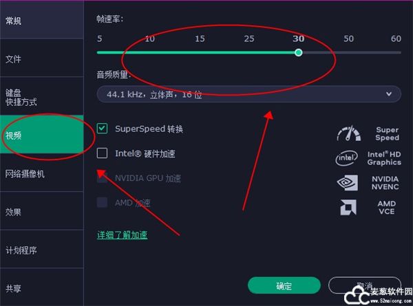 4、视频设置,可以设置帧速率以及音频质量,并且还能够支持SuperSpeed转换。