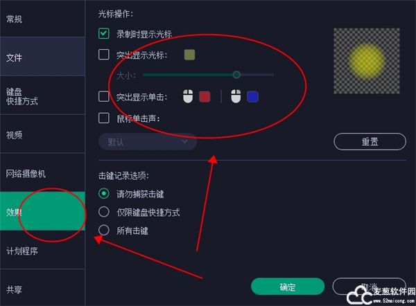 5、录制的时候,屏幕中的光标也是可以进行修改的,并且能够突出显示单击效果。