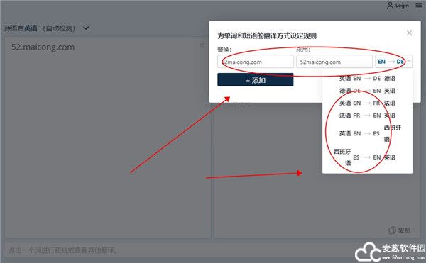 2、左边的选择完成后,再点击右边的小箭头,把翻译的语言也修改至用户需要的语言。