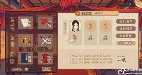 1、经营养成:赚得盆满钵满还是开业几年还欠债?楼上的姑娘们是混吃等死,还是个个出口成章.花容月貌.武功盖世?看老板你是怎么安排的了。