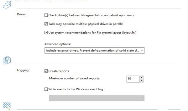 允许您为碎片整理定义阈值。这意味着碎片整理只会发生在达到一定程度的碎片中。所以你可以避免不必要的碎片整理运行,确保你的驱动器处于最佳的形状状态。