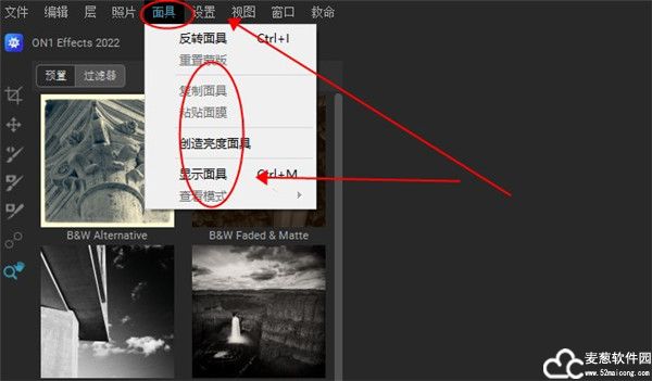 4、还有面具可以使用,并且能够反转面具以及重置蒙版和创造亮度面具等。