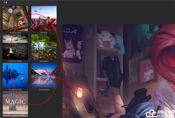 3、导入进来之后在左边有很多的滤镜模板可以使用,点击一个主题后,还有更加详细的滤镜供用户选择。