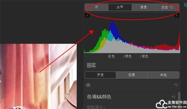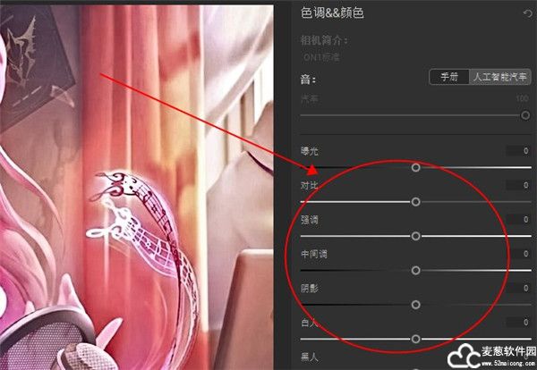 4、在右边还有色调以及颜色可以修改,就比如曝光、对比度以及强调等。