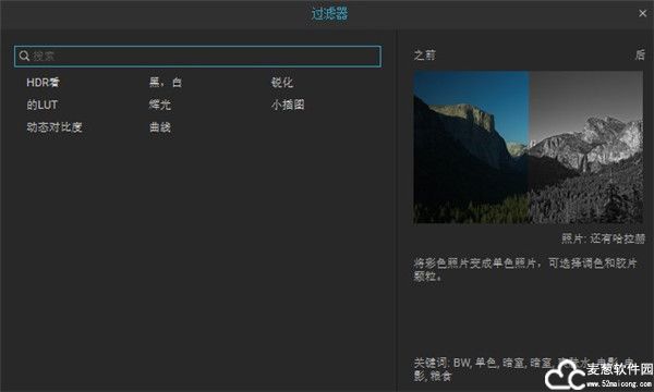 9、使用滤镜,可以控制外观,从自然到经典的色调映射外观。