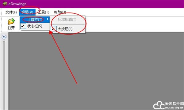 3、在视图中,可以修改软件状态栏以及工具栏的显示图标。