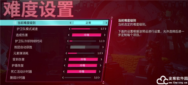5、选择好难度级别以后,下面的设置根据预设配置,每一项都可以进行选择。